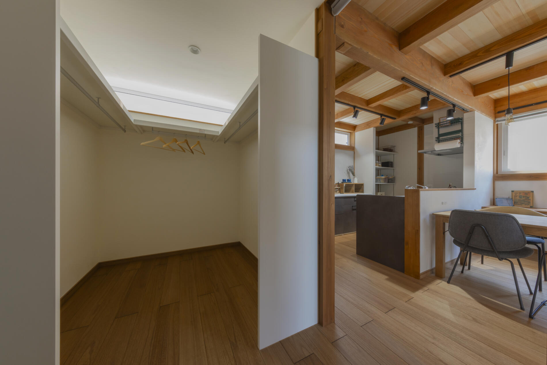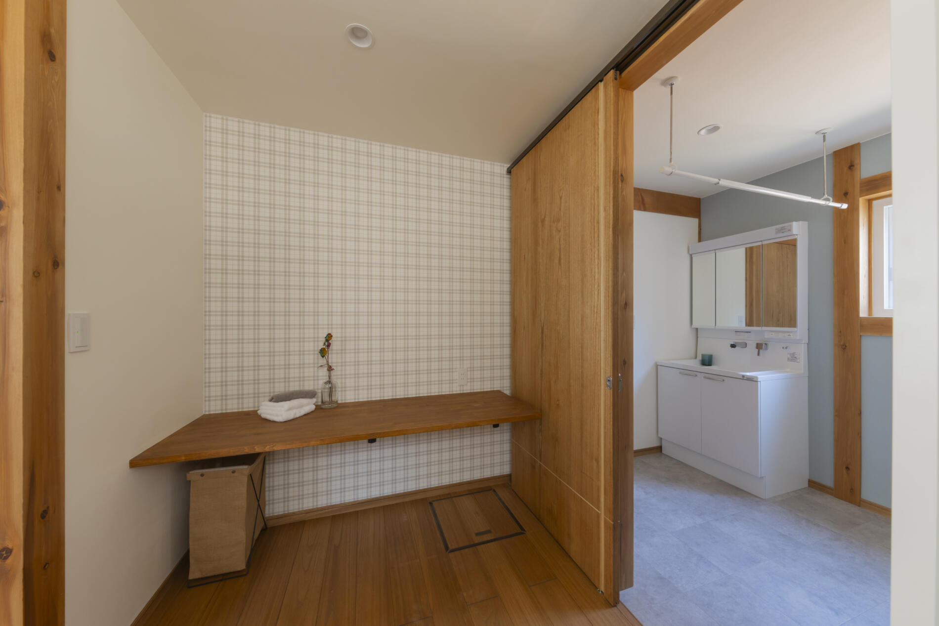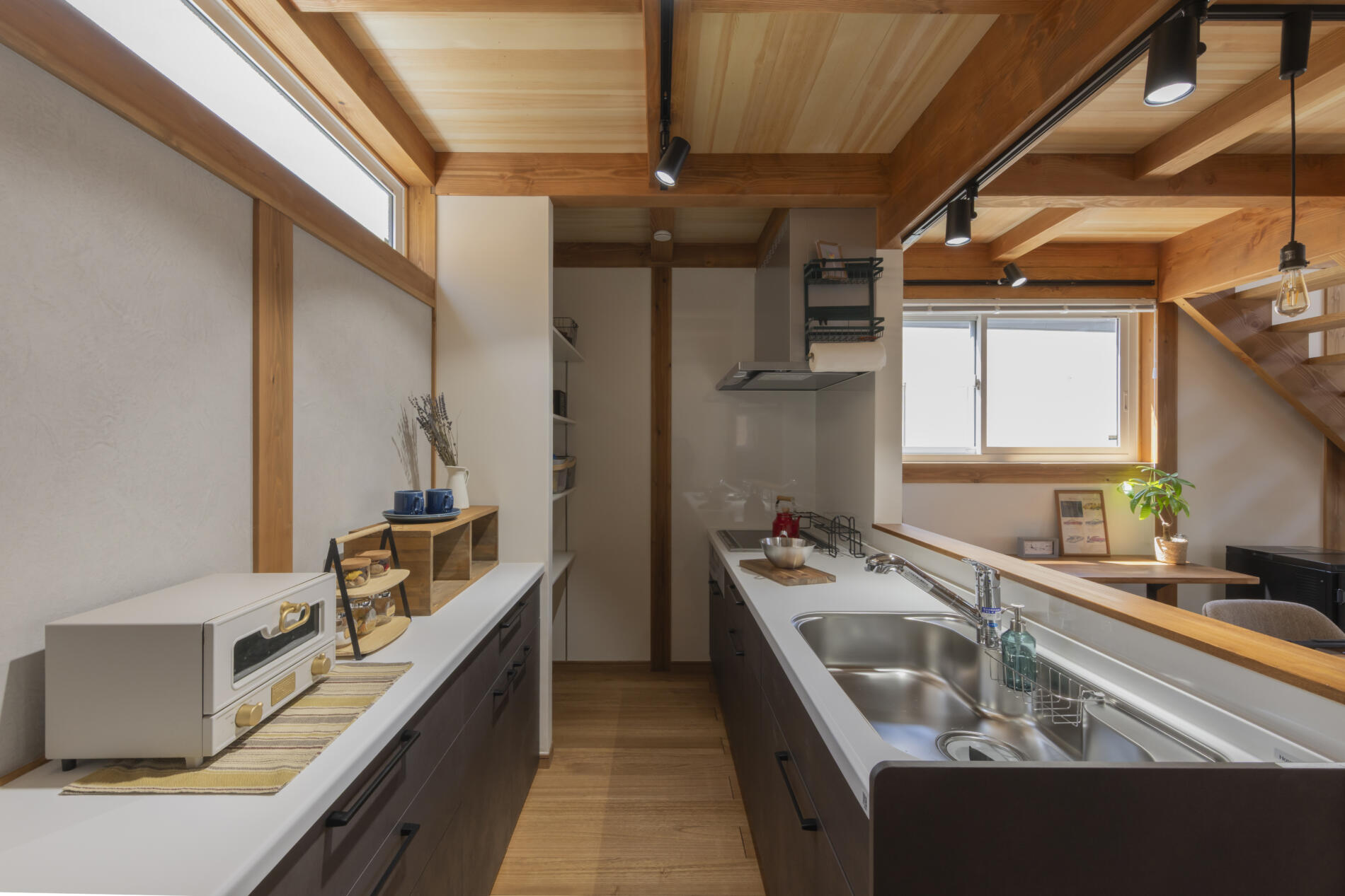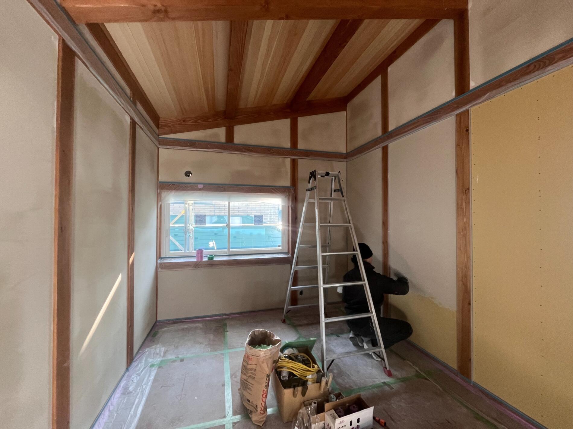 仙台市太白区 T様邸 NEW 2026年2月10日 仙台市太白区 T様邸 木に包まれたやわらかい暮らし 外観 片流れの屋根と玄関からデッキまでつながる深い軒は、デザイン性と日々の暮らしやすさを両立。 間取 キッチン背面にはすぐ使えるパントリーを設け。パウダールームとウォークインクローゼットをすぐ隣に配置、さらに抜けると洗面脱衣所があり日々の家事のストレスフリーな導線を設計。 断熱気密 外断熱+充填断熱により北海道基準クリアの建物。屋根には断熱材と遮熱シートが入っているので、夏の暑さも防いでくれます。 内装 木に包まれ心地よい室内は、白い漆喰壁に、天井の赤松の羽目板と市松模様の桐の床がアクセント!! 平面図 1F 2F 施工中 ①基礎工事 ②給排水工事 ③土台敷・床断熱 ④建て方 ⑤建て方2 ⑥屋根工事 ⑦木工事 ⑧断熱充填 ⑨漆喰仕上げ ⑩桐床仕上げ 施工後 ①リビング ②キッチン ③パウダールーム ④ウォークインクローゼット ⑤玄関 ⑥フリースペース ⑦洋室 外観 外観2 ← 仙台市太白区 M様邸 NEW